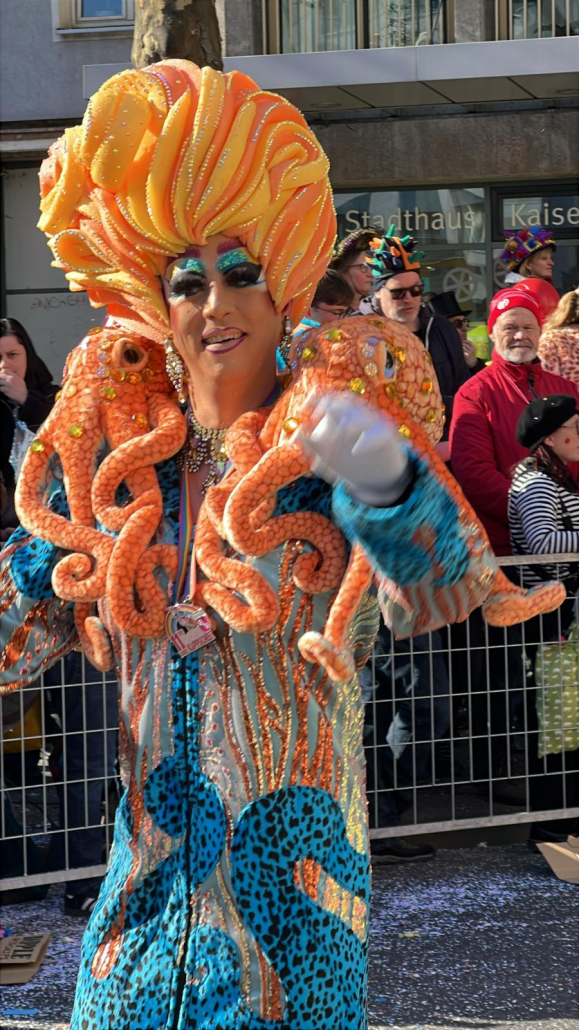 Für viele unserer internationalen Sprachschüler ist der Rosenmontagsumzug ein beeindruckendes Erlebnis und eine wunderbare Gelegenheit, Fastnacht hautnah zu erleben. Bunte Kostüme, mitreißende Musik, ausgelassene Stimmung und natürlich „Helau“-Rufe prägen den Tag. Der Mainzer Rosenmontagsumzug ist einer der größten in Deutschland und begeistert mit prachtvollen Motivwagen, Fußgruppen, Garden und Musikvereinen. Die Motivwagen greifen häufig aktuelle gesellschaftliche und politische Themen auf – immer mit einem humorvollen Augenzwinkern. Natürlich darf auch das Werfen von „Kamelle“ (Bonbons) und anderen Süßigkeiten nicht fehlen.